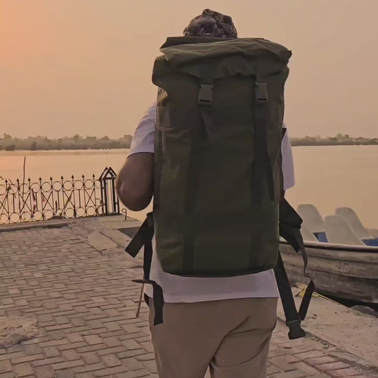 MJM outdoor presents A rugged and durable hiking backpack designed for outdoor adventures. Built with heavy-duty fabric, adjustable straps, and a roll-top closure for maximum storage and weather protection. Perfect for trekking, camping, and traveling